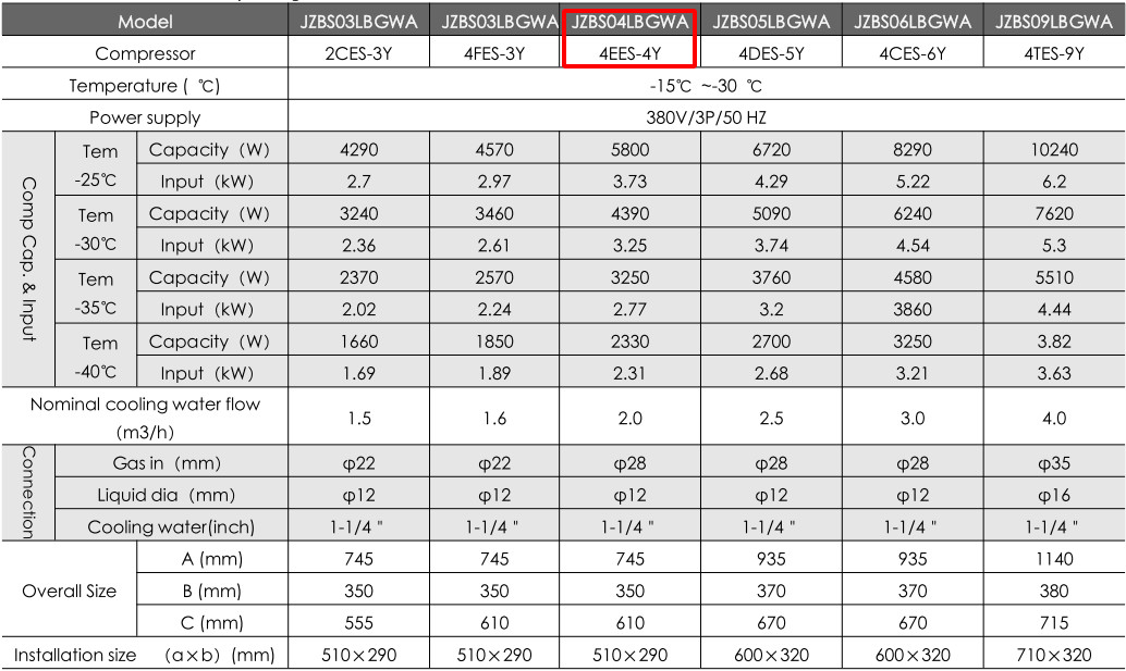Sử dụng máy nén Bitzer Model: 4EES-4Y