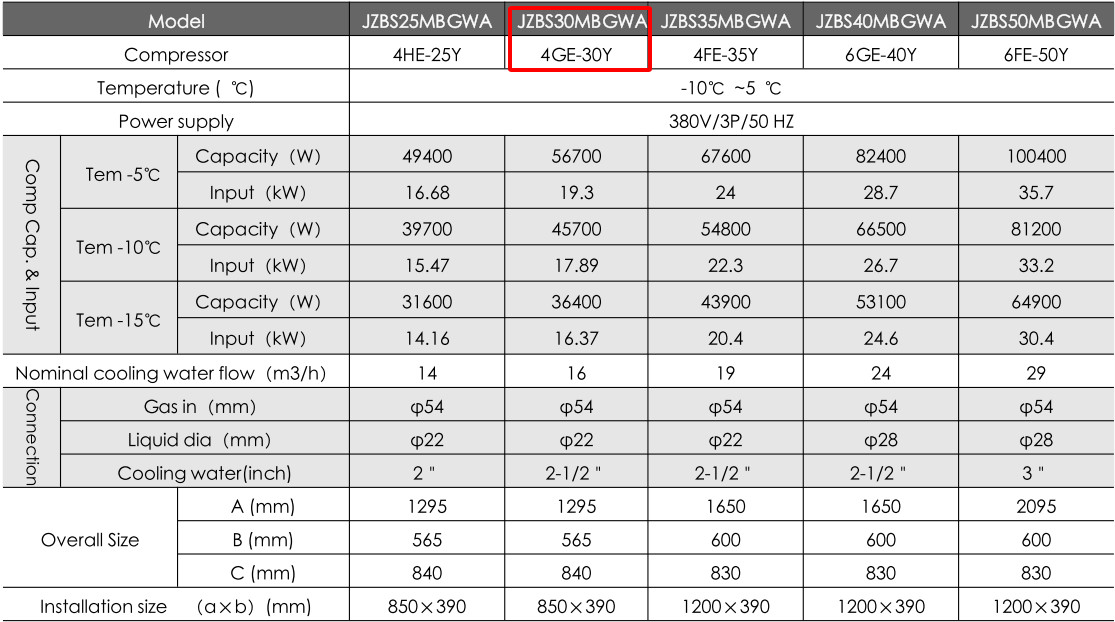 Sử dụng máy nén Bitzer Model: 4GE-30Y