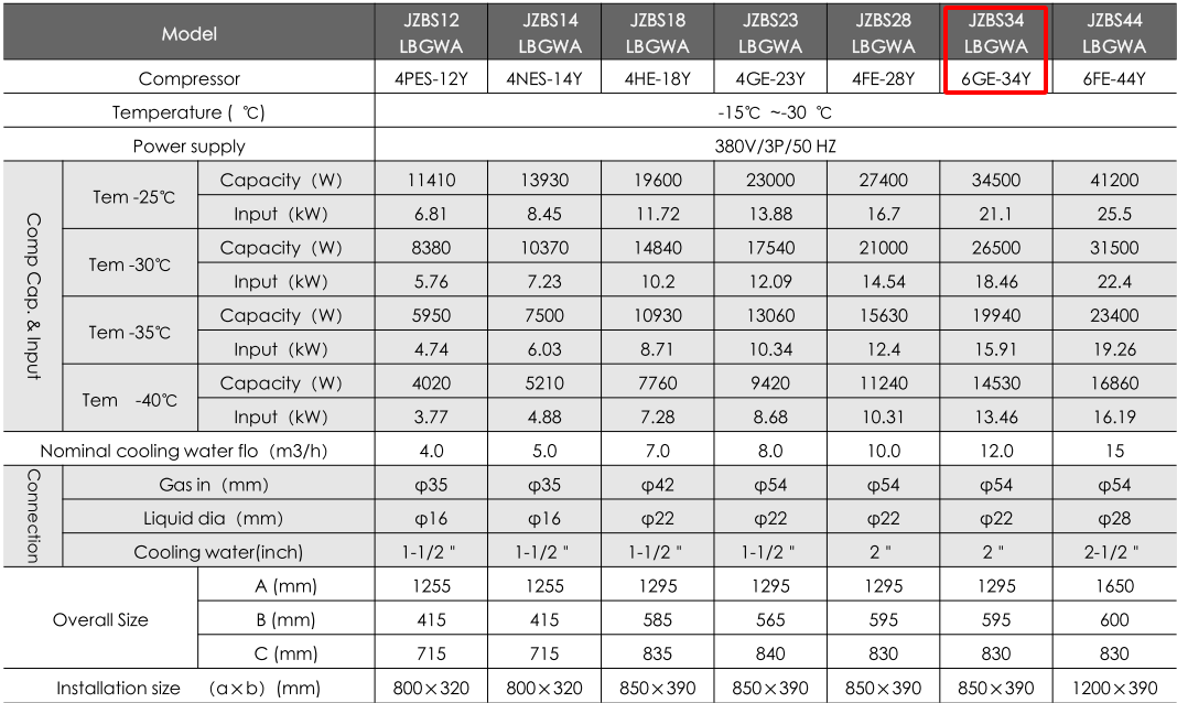 Sử dụng máy nén Bitzer Model: 6GE-34Y