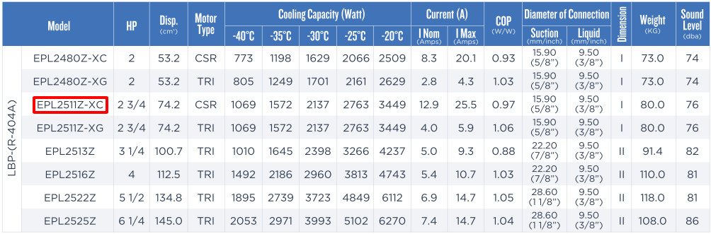| Công suất lạnh | 2.763 kW tại Te = – 25℃ |