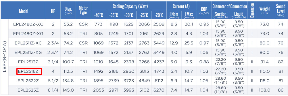 | Công suất lạnh | 3.813 kW tại Te = – 25℃ |