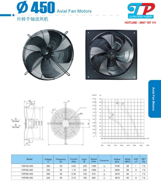 Quạt dàn lạnh kho lạnh YWF4E-450S